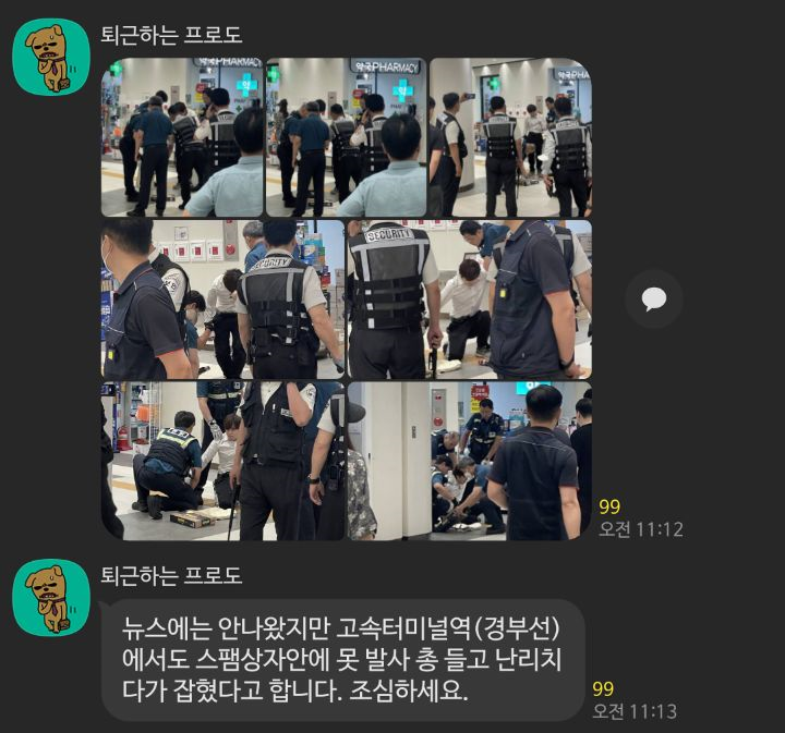 고속터미널역...위치보니 지하상가 같은데 3,7,9호선 환승역에 유동인구 많은곳이라 큰일날뻔한거 | 23.08.04 11:29 | | |