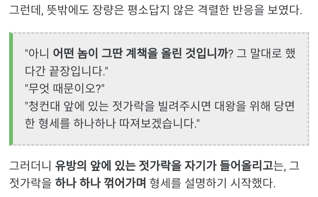 비속어와 함께 자기 주군 밥먹던 젓가락 분질러가면서 형세설명하는 군사