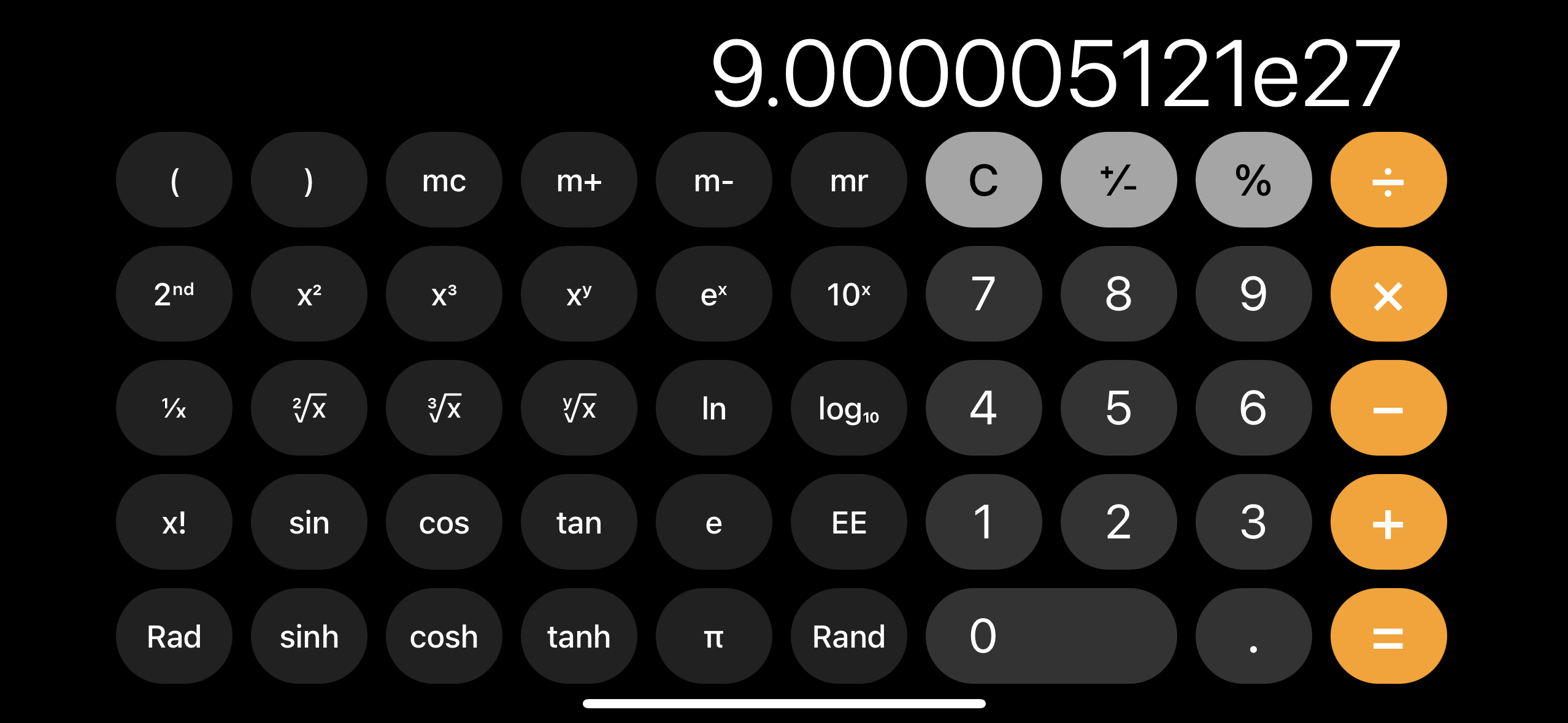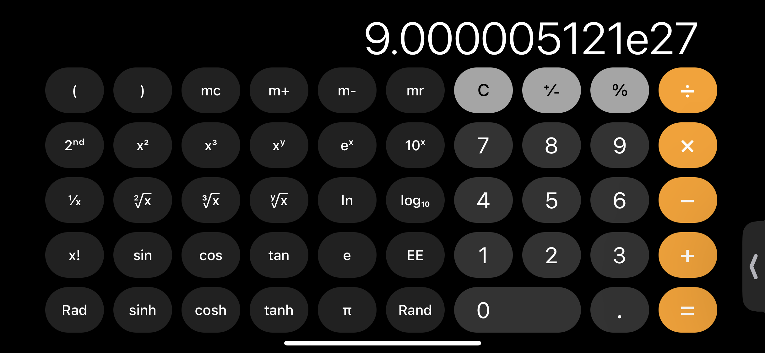 자리수가 많아지면 에러가 뜸 그건 일반 계산기고 아이폰은 가로로 돌리면 공학용으로 나오는데 그걸로 계산하면 답 뜸 물론 공학용도 자리수가 e150 정도 에서 에러 뜸 | 23.10.15 17:49 | | |