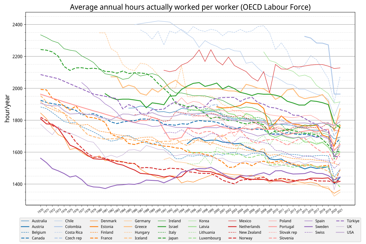 근로시간자체는 서서히 줄어들고 있긴해.
