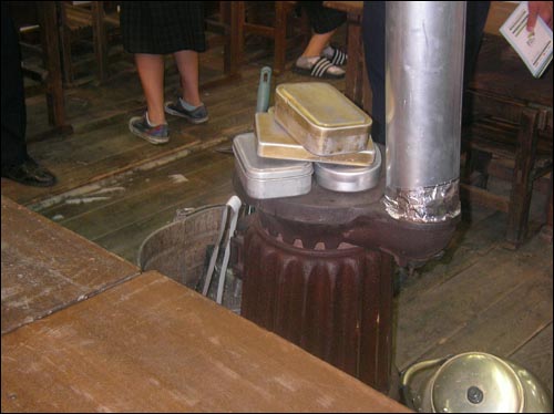 저건 가짜고 실제로는 엄청나게 뜨겁기 때문에 난로 주위가 안전망으로 둘려져 있음... 난로가 너무 뜨거워서 도시락을 저렇게 올려놓는건 말도 안되고 안전망 안쪽으로 근처두는게 일반적.. 보통 석탄8에 불쏘시개용 나무가 2정도가 들어감 저게 엄청나게 뜨겁기 때문에 연통에 점퍼가 녹거하 데이는 사고가 가끔 발생함.. | 24.04.13 18:53 | | |