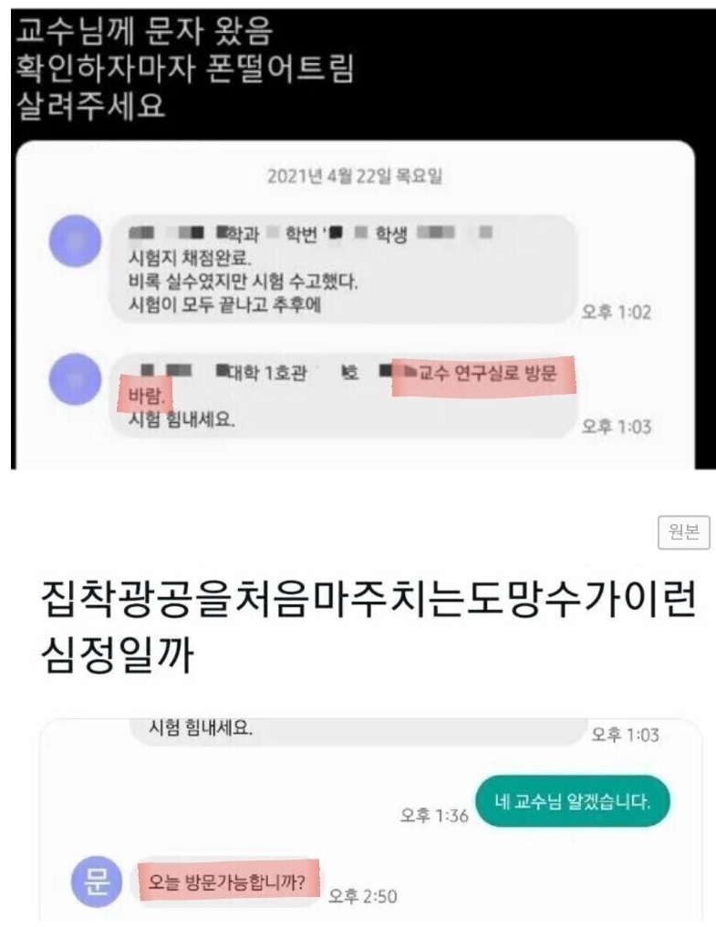시험 끝날 때까지 기다리다가 조교가 다른 교수한테 말해서 새치기 당할까 봐. 급하게 오늘 보자고 하는 교수.
