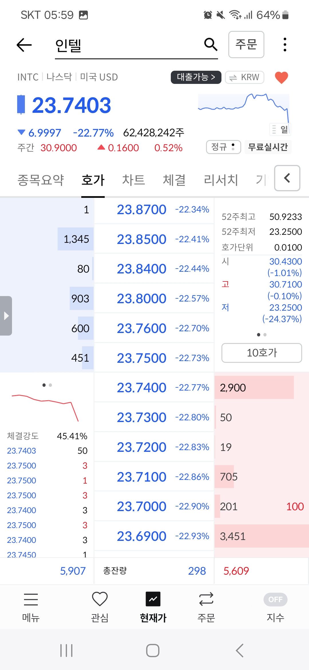 좀 전에 봤을때 $22.34 였던 듯. | 24.08.02 21:27 | | |