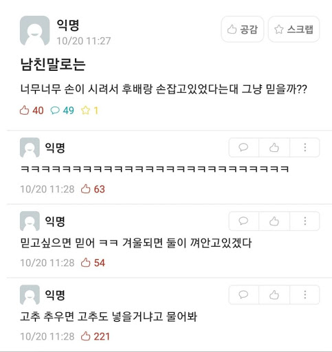 추우면 손비비는데 추우면 밑에도 넣고 비빌건가 | 24.08.02 18:42 | | |