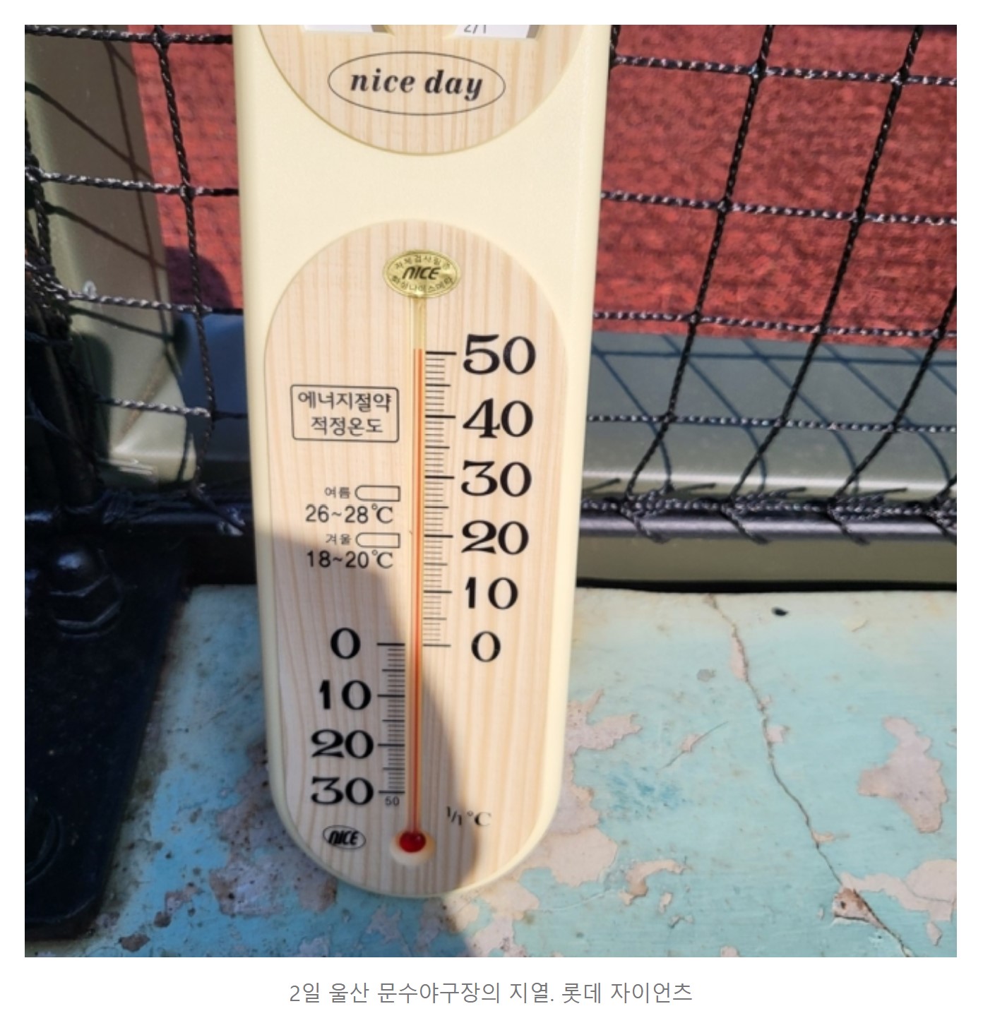 오늘 울산야구장 잔디가 50도라 크보 사상 최초로 야구가 폭염 취소됨