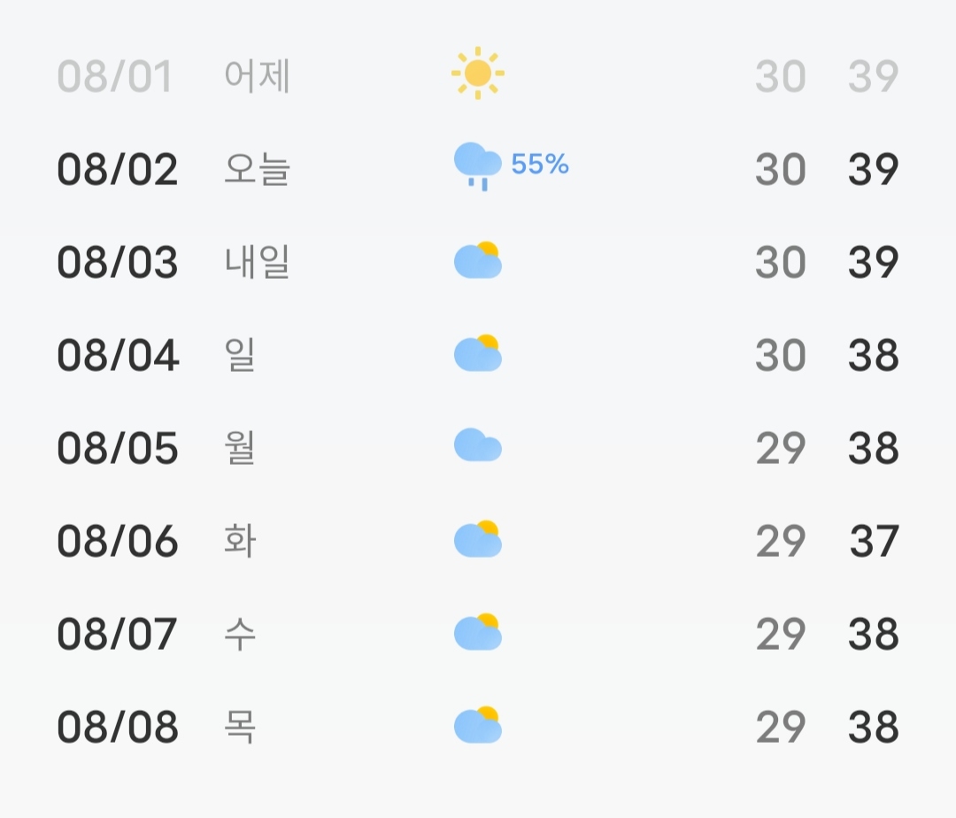 작년보다 더 더움;; 지난주 수영장갔는데 수온이 35도라서 나옴 ㅋㅋ | 24.08.02 17:13 | | |