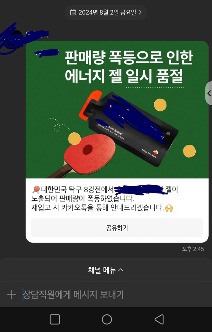 이거 제품이름은 모르겠는데 신유빈 츄르라는 이름으로 주문폭주해서 품절상태라고 ㅋㅋ | 24.08.03 21:28 | | |