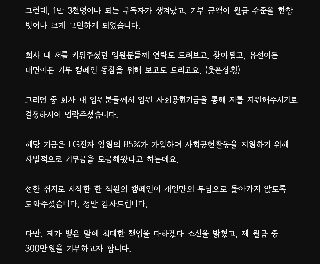 헐 월급중 300만원 기부,,,,,,,, 그럼 월급은 얼만겨??? | 24.08.07 11:00 | | |
