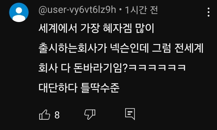 제작사가 온 역량을 갈아 만든 AAA급 게임 7만원은 비싸 언제 섭종할지도 모르는 모바일겜 현질은 수십만원 정도야~ 게임업계의 미래는 어둡다... | 24.08.07 12:17 | | |