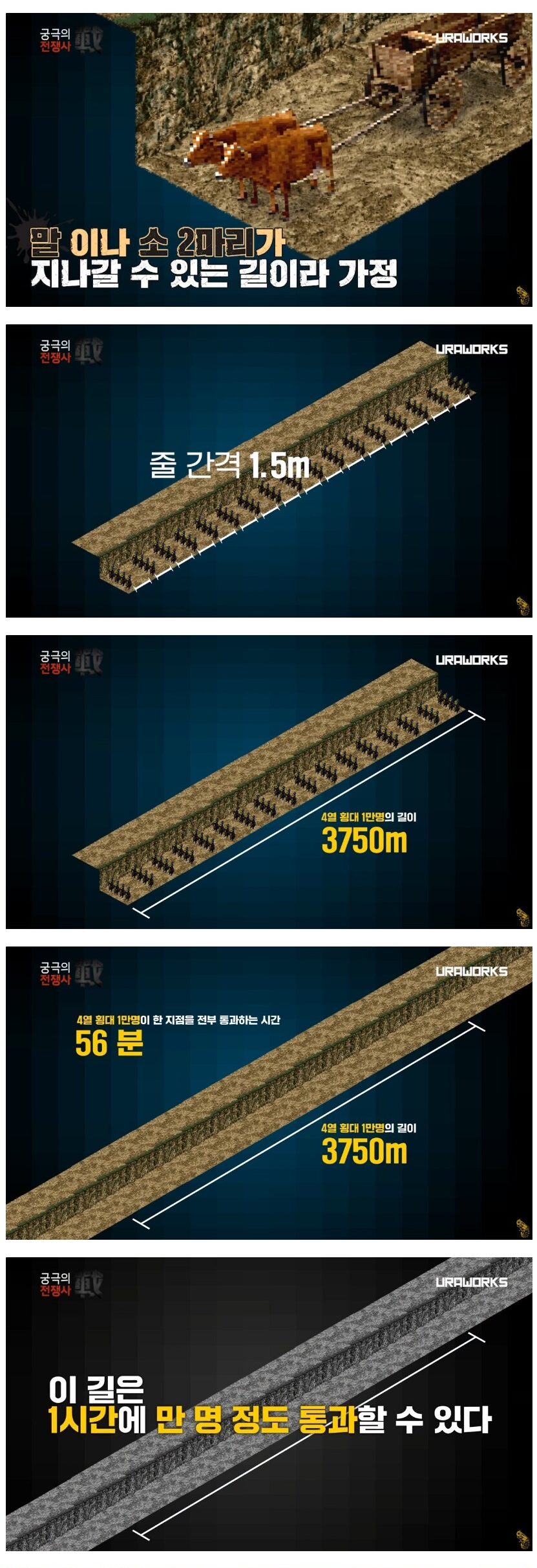 잘 닦이거나 좋은길 기준으로도 이정도 시간 걸리는거 + 113만중에 선발대가 좀 많이 나가서 병력이 지나갈 길목을 비워줘야 후발대 애들도 비로소 출발할수 있을테니까 113만중에서 한 60만번째 애들은 선발대가 출발한지 한 20일쯤되서야 비로소 연병장에서 출발 가능하지 않았을까 설명이 있더라고 거기에 본문 설명처럼 40일동안 애들 서서 딩가딩가 하는게 아니라 밥은 먹여야 할텐데 거기 들어가는 군량미만 생각해봐도 어우... 계산하기 쉽게 한줄에 2천원짜리 김밥 한줄씩만 먹인다고 쳐도 2,000 x 3 = 6,000 원 x 1,000,000 = 6.000.000.000 하루 60억 시벌 ㅋㅋㅋㅋㅋ | 24.08.07 18:07 | | |