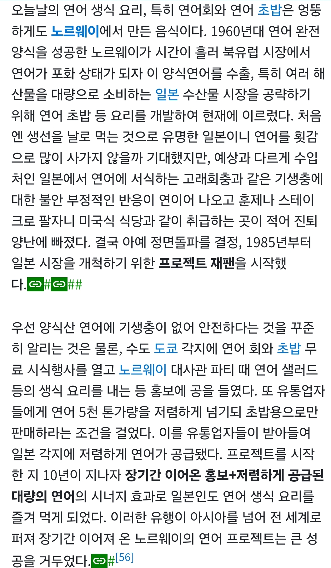 연어는 반대야 걔네도 익혀먹는게 보통이긴 한데 연어 생으로 먹는건 노르웨이가 일본에 전파한거 | 24.08.07 20:11 | | |