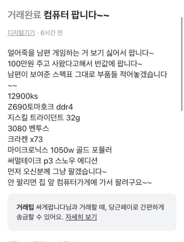 기존껀 당근에 10년전 꺼라며 무료나눔하는 훈훈함까지.