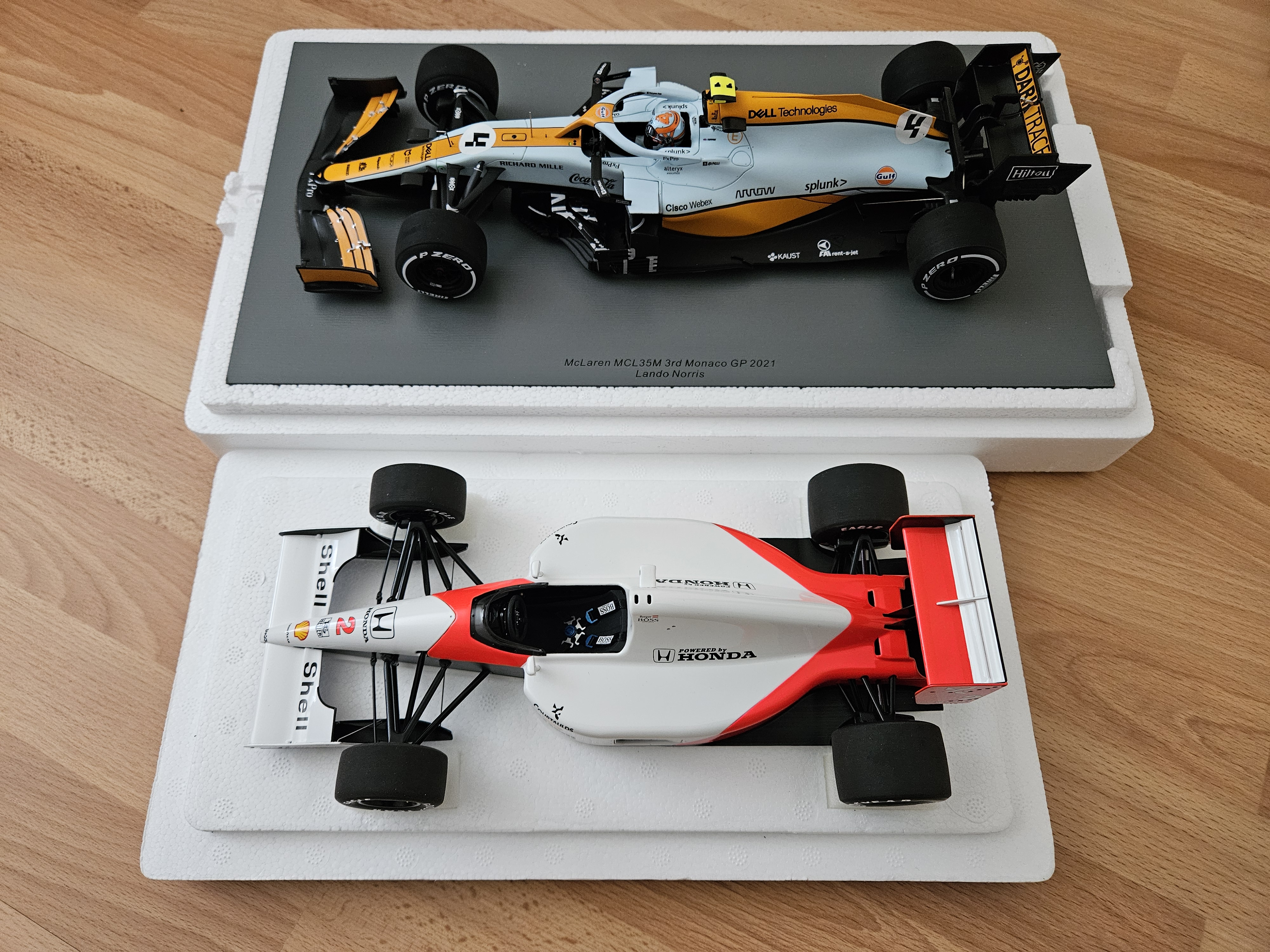 30년의 차이 (위: 2021 맥라렌 MCL35M 모나코, 아래: 1991 맥라렌 MP4/6 스즈카)