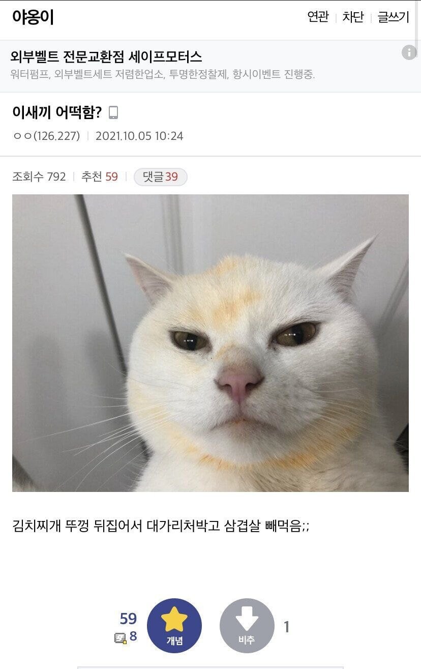 저 오동통한 뱃살이 마당에 널어둔 내 건어물 훔쳐먹고 생긴거라고 생각하면 개빡치지 ㅋㅋ | 24.08.26 17:50 | | |