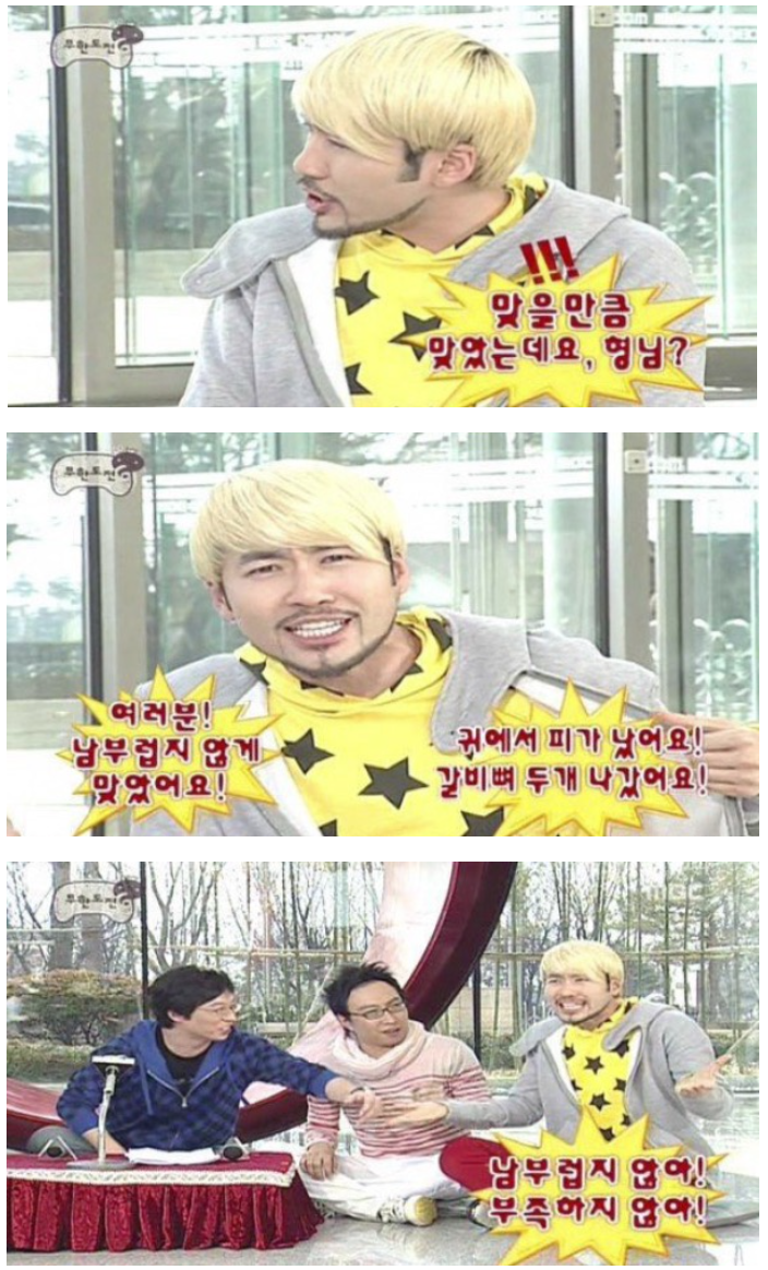 나중에 부러진 갈비뼈 가지고 무도에서 자기 트레이드 마크로 삼음 멘탈 대단했다