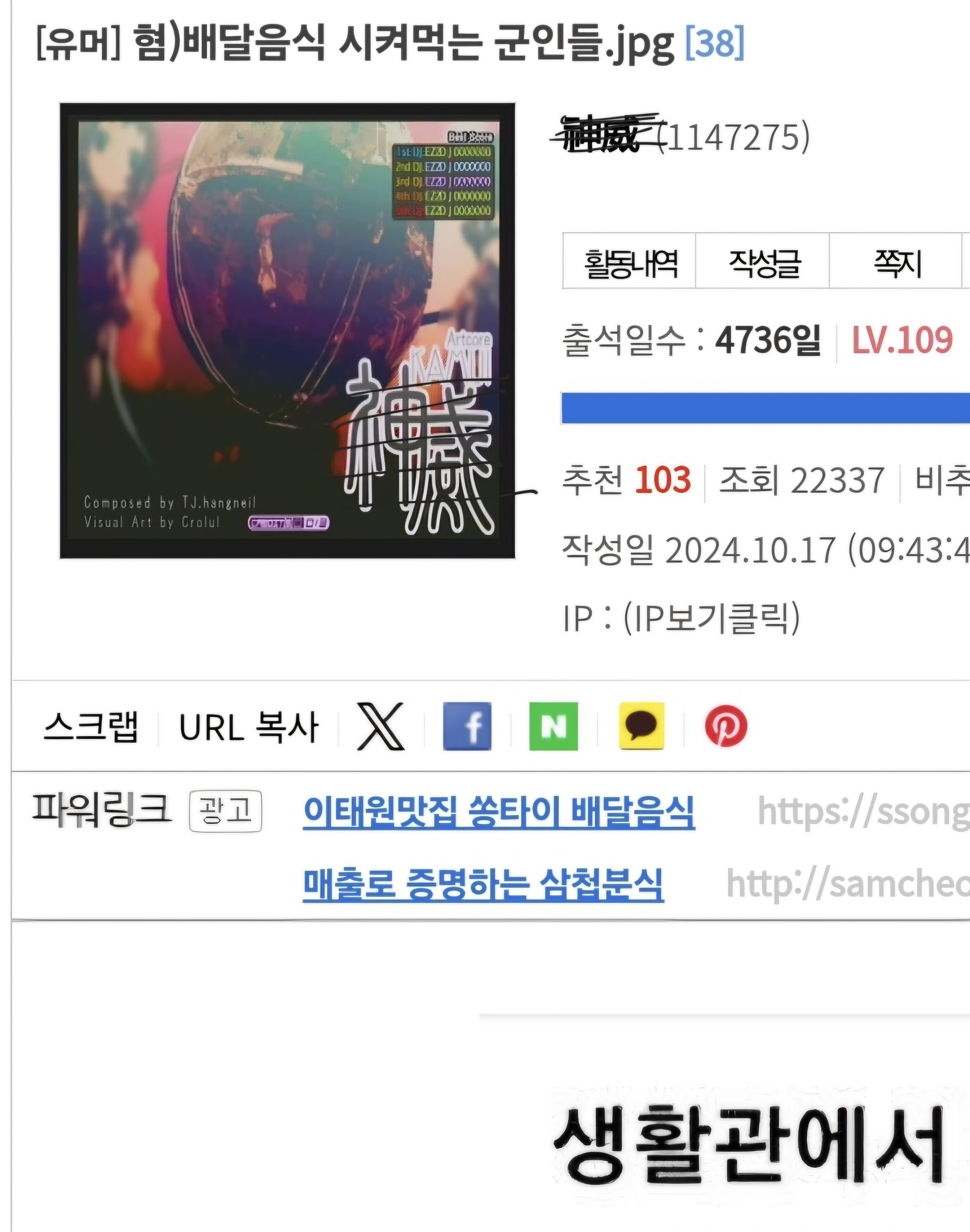 빱!빱! 빠바빱! 빠빠라빠라빠빠빠라빠 빠빠빠 빠빠밥 빠빠빱! 빠빠빠라빠빠라빠빠빠빠라빠빠빠빠빠! | 24.10.17 14:13 | | |