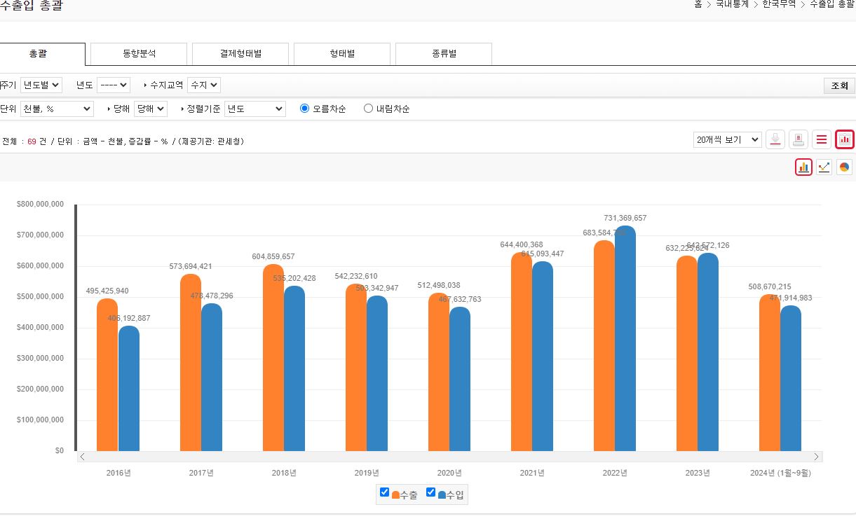 수출이 작년보다는 좋은거지 역대급이란건 어디서 본거야 | 24.10.21 08:39 | | |