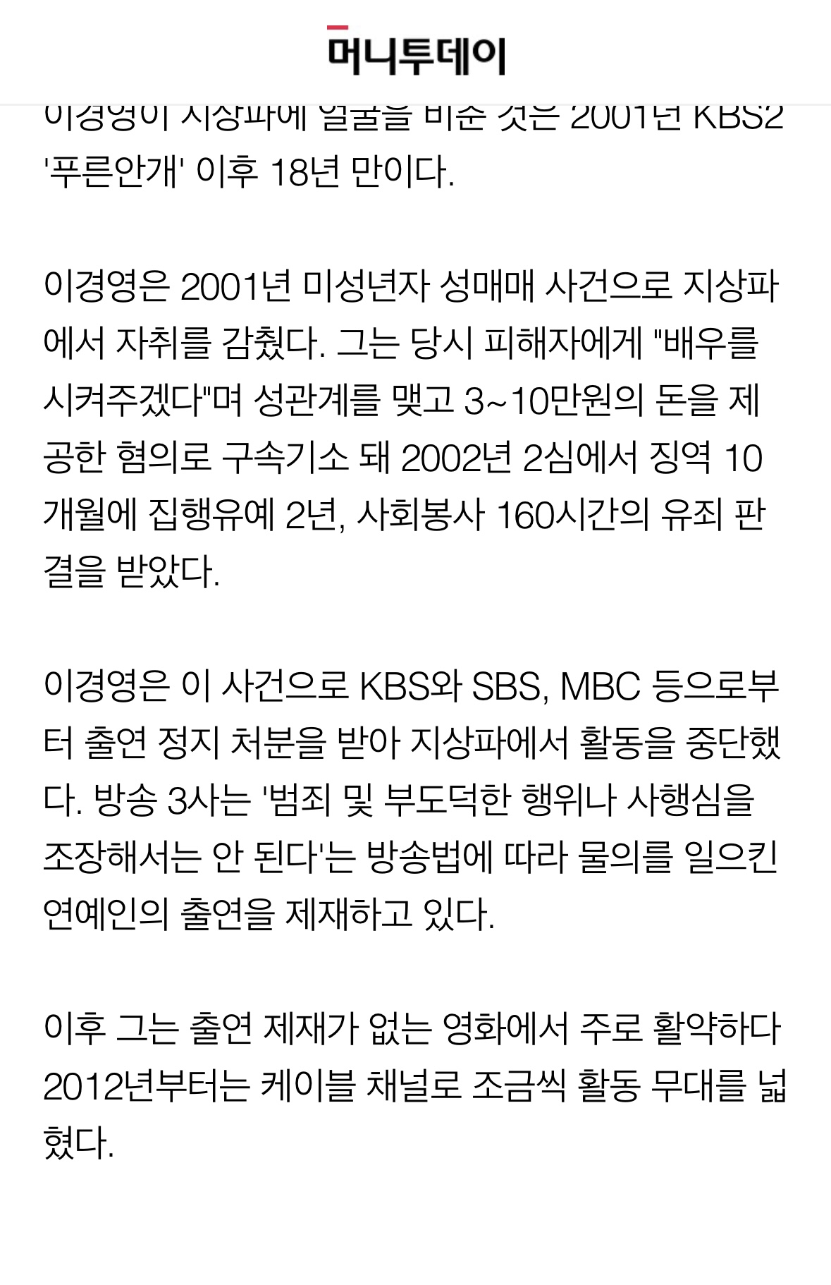 https://m.mt.co.kr/renew/view_amp.html?no=2022051113502964200 나도 이 글 보고서야 기사 찾아봤는데 배우 시켜주겠다며 미성년자 꼬드겼네. 2001년에 이런 짓을 하고 지금까지 쭉 활동을… | 24.10.21 09:46 | | |