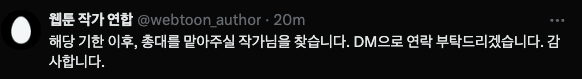 그렇긴 한데 저기서 말하는 200명 이상 모았는데 대표 작가 이름도 못대는 시점에서 ㅋㅋ | 24.10.22 13:11 | | |
