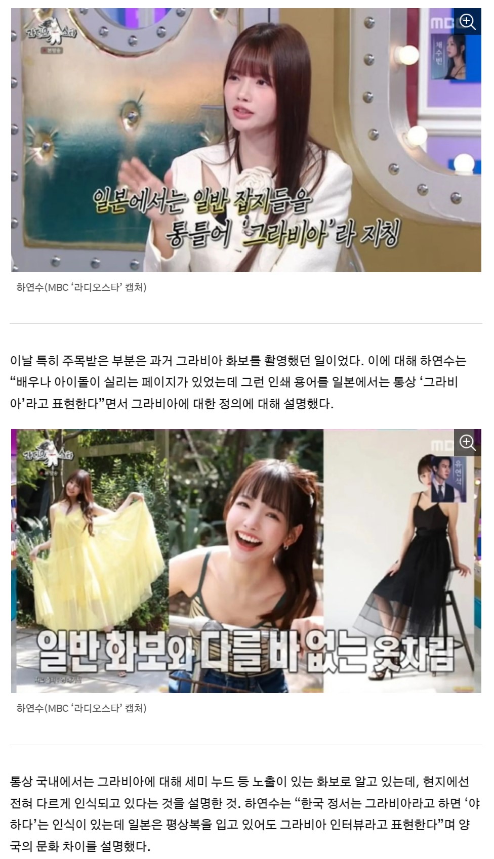 얼마전 라스에 출연한 하연수가 본인이 그라비아 찍은걸로 오해 받았다고 해명함