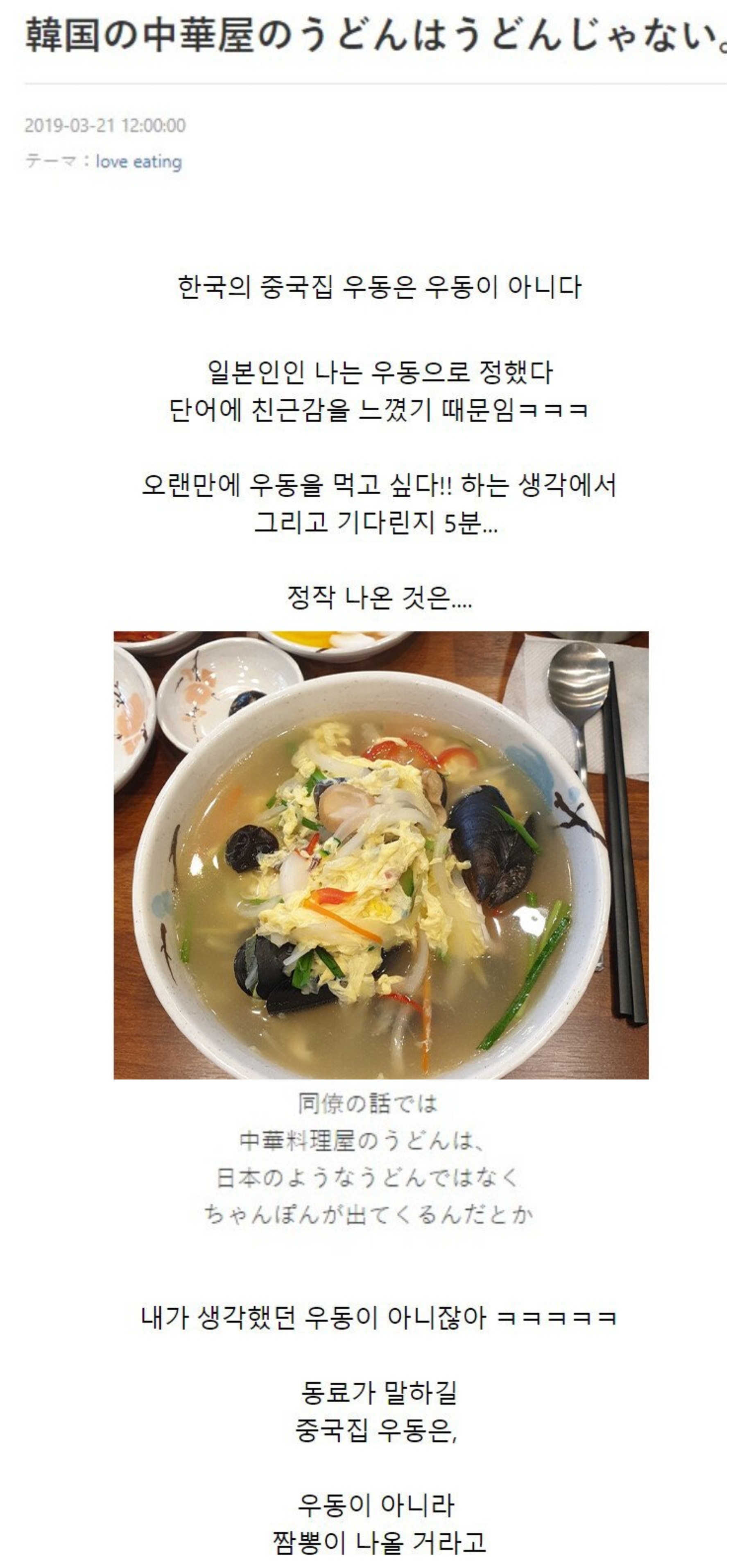 ㅡㅡㅡㅡㅡ 정작 우동의 본고장에선 짬뽕이라고 간주한다는 중국집 우동...