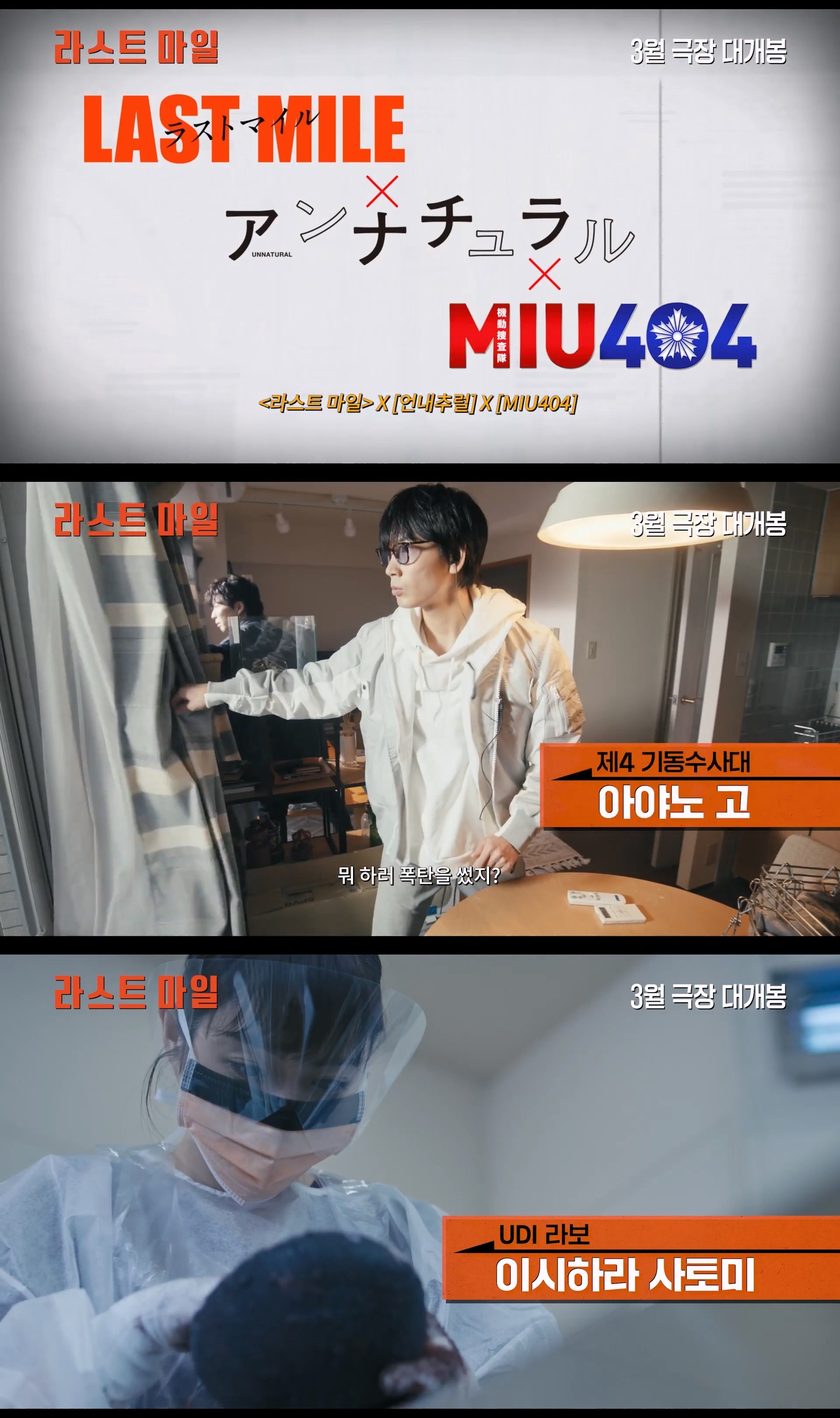 이번 3월에 개봉하는 영화인 '라스트 마일'이 같은 세계관이더라구요 언내추럴하고 미우404하고 같은 세계관 https://youtu.be/V5tQRJmCAgg 물론 주연들도 같이 등장합니다 | 25.03.13 00:11 | | |