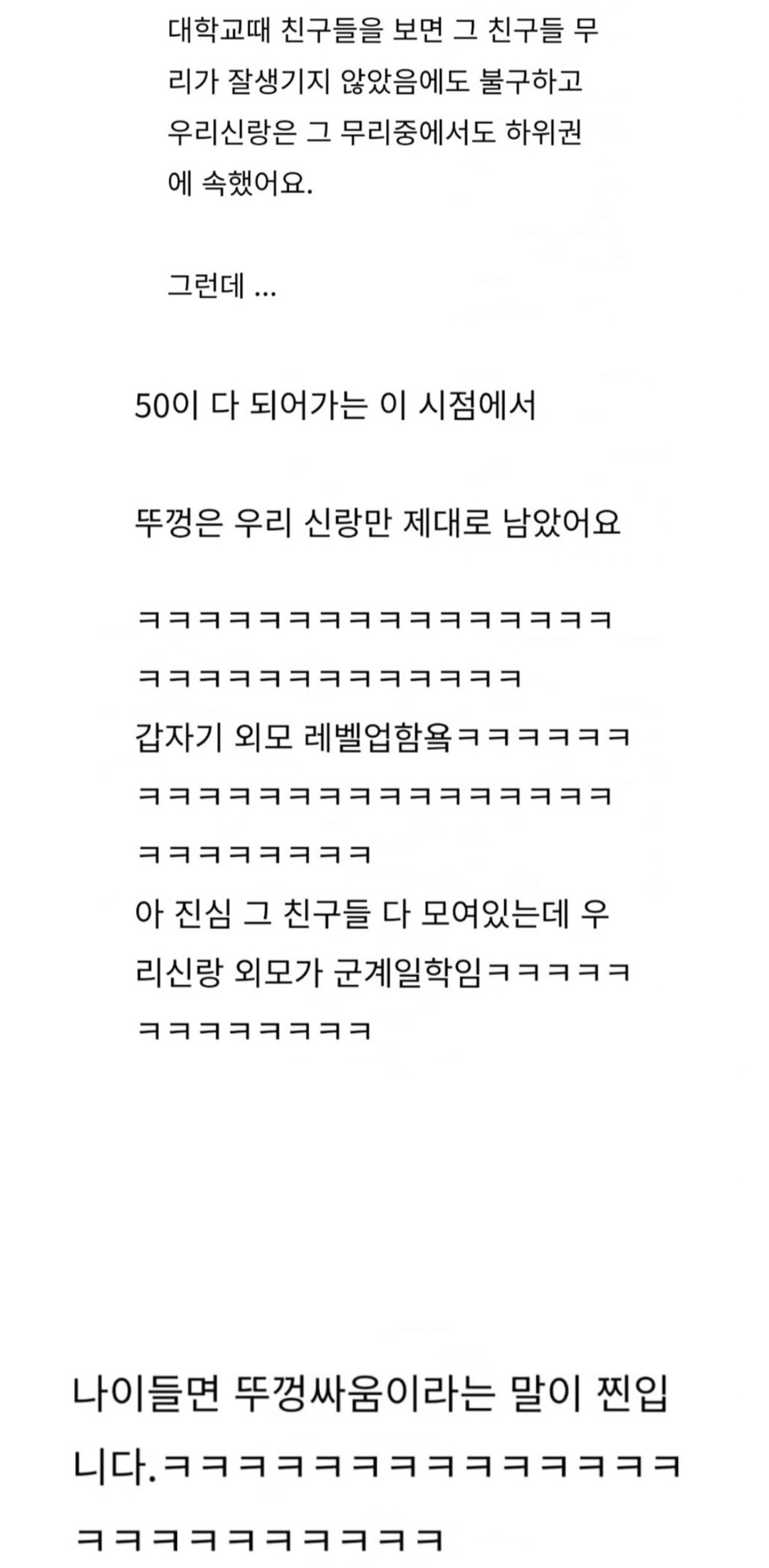 대충 하위권이였던 자기 남편이 나이들자 상위권으로 올라섰다는 썰ㅋㅋ