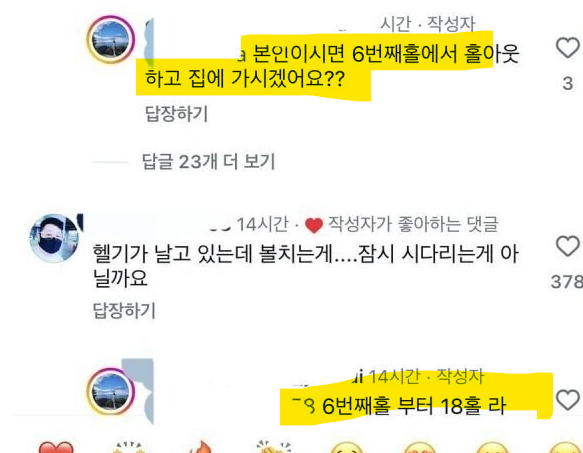 맞음. 왜 골프장에 헬기가 와서 돌아다니냐!! 뭐 이런 의미로 올린듯. | 25.03.24 13:46 | | |