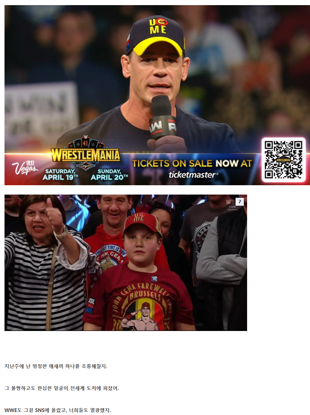 세상에 존시나가 날 가리키며 욕을 갈겼어! 이 맛에 존시나 팬 하지!