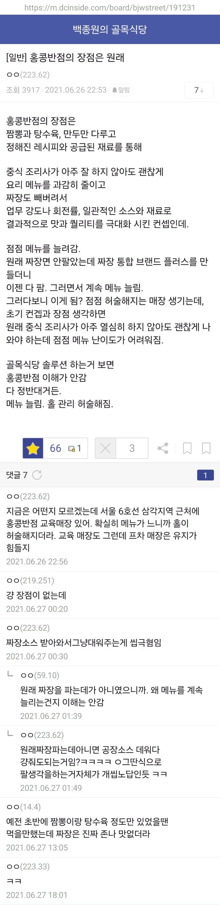 근데 그때도 대부분 홍콩반점은 점바점 심하다고 욕하는 사람 많았음 ㅋㅋ | 25.04.15 04:02 | | |