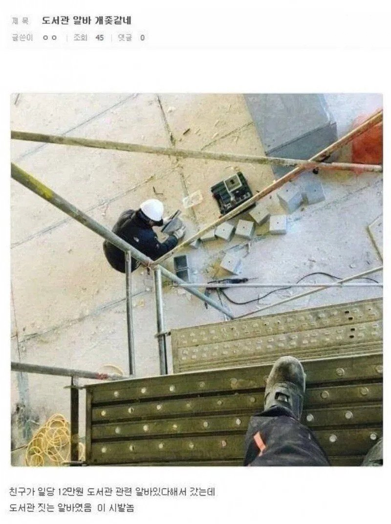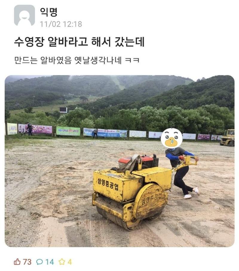 비슷한 예로 수영장 건설 알바가 있습니다 ㅋㅋㅋ