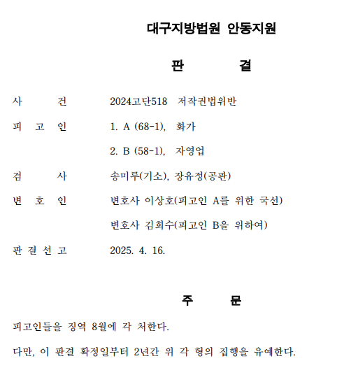그래도 판결에 영향 안줄거 같은데? 화풍만 비슷한게 아닌이상 | 25.04.18 17:56 | | |
