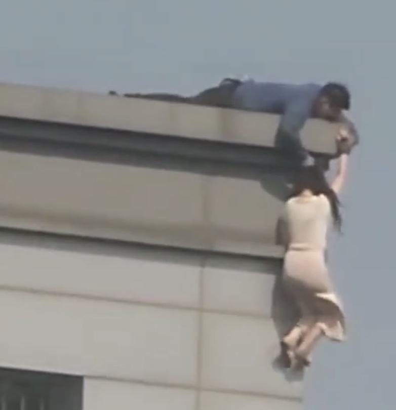 그 파쿠르한 건물 난간에 다시 매달려서 투신 시도함