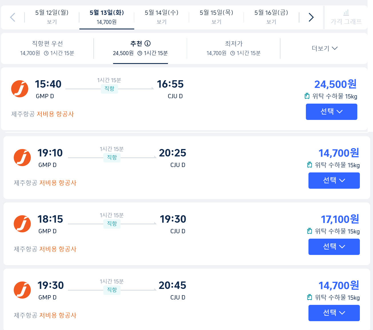 제주도 비싸다 비싸다 해서 2년 전에 갈 때도 개 쫄고 갔는데 비행기값부터 해외 항공권하고 비교가 안 되더만. 이번 추석에는 가족들하고 갈려고 항공권 검색하는데 이미 연휴 때는 매진이라 하루 당겨서 가게 됨. | 25.05.12 15:50 | | |
