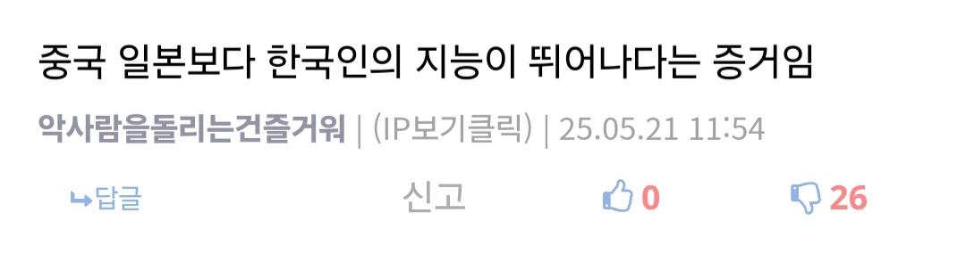 일단 적어도 네 지능이 인류 평균보다 떨어져 보이는 건 알겠는데 | 25.05.21 11:58 | | |