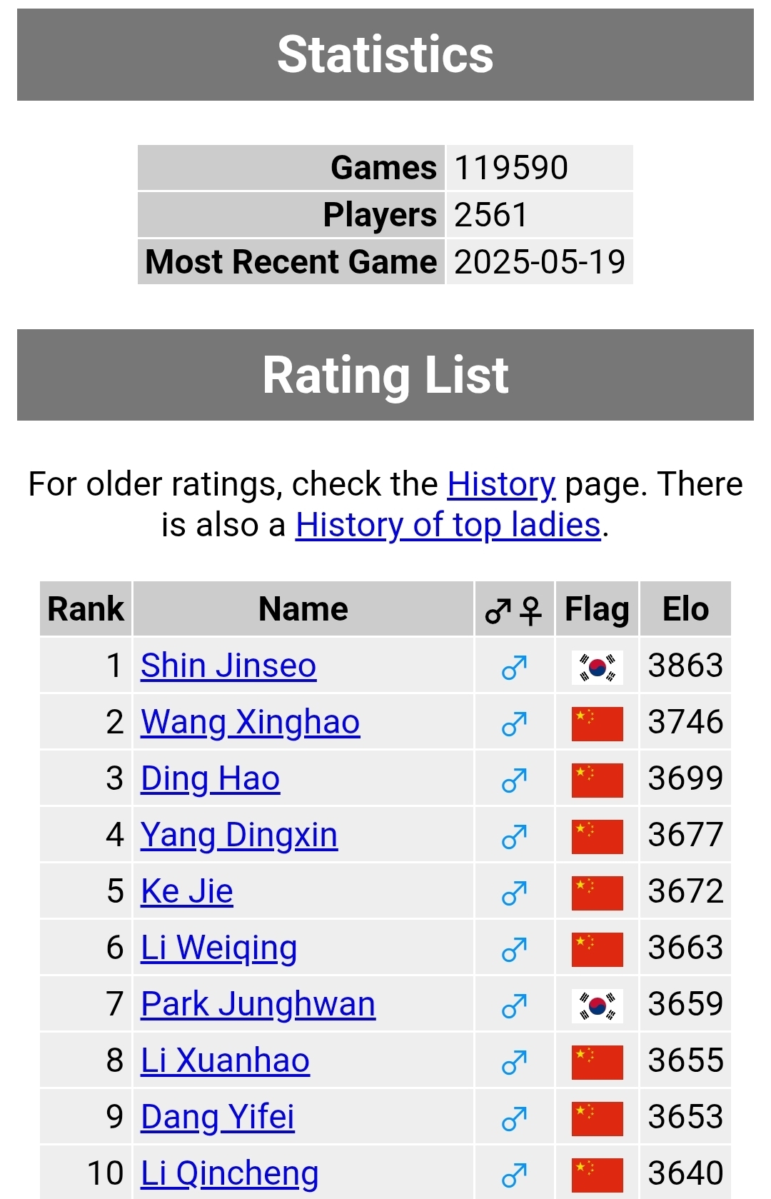 신진서한테 밀린 뒤에도 계속 박정환이랑 2~3위 싸움하는 걸 보면 됨. 세계랭킹 1위는 3년이지만, 세계랭킹 in3는 11년이고, 이건 곧 중국랭킹 1위도 10년 넘게 장기집권했다는 의미임. | 25.05.21 12:19 | | |