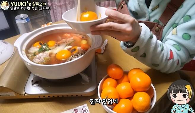 귤 전골 생각보다 딱히 괴식은 아니고 국물에 귤향이 스며들어서 의외로 맛있음. 우리나라에도 있는 유자 라멘 같은 느낌 생각하면 됨. 근데 귤 자체는 끓이면서 흐믈흐믈해져서 별 맛은 없고 국물에 향 베이개 하는 용도 | 25.05.30 23:53 | | |