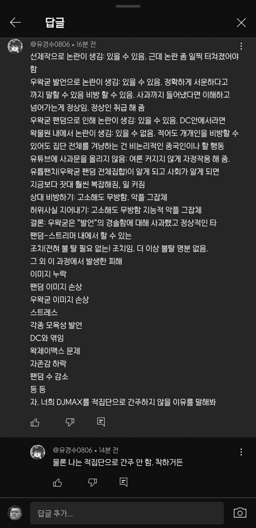 존나 오만한 발언 추가요