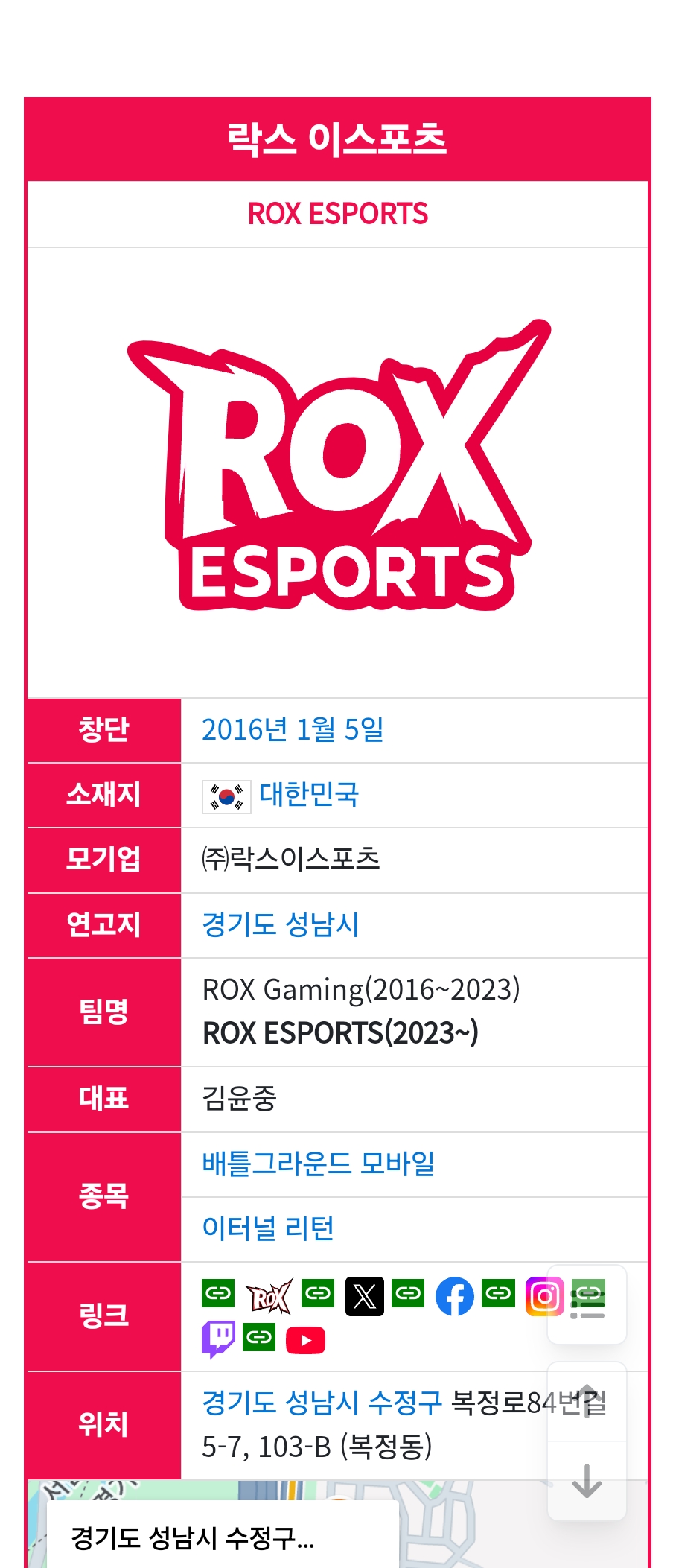 참고로 e스포츠 팀 중 ROX 이스포츠는 연고지가 성남이다 시발롬들아