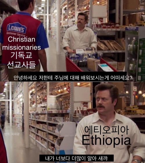 에디오피아 특)) 성경에도 솔로몬이 에디오피아 여왕과 교류를 했었고, 예수 제자에게 에디오피아 관리가 1:1로 선교받는 장면이 있고, 이후 에디오피아 정교회가 생길 정도로 근본있음. 심지어 십자군에도 중장기사를 보냈었음.