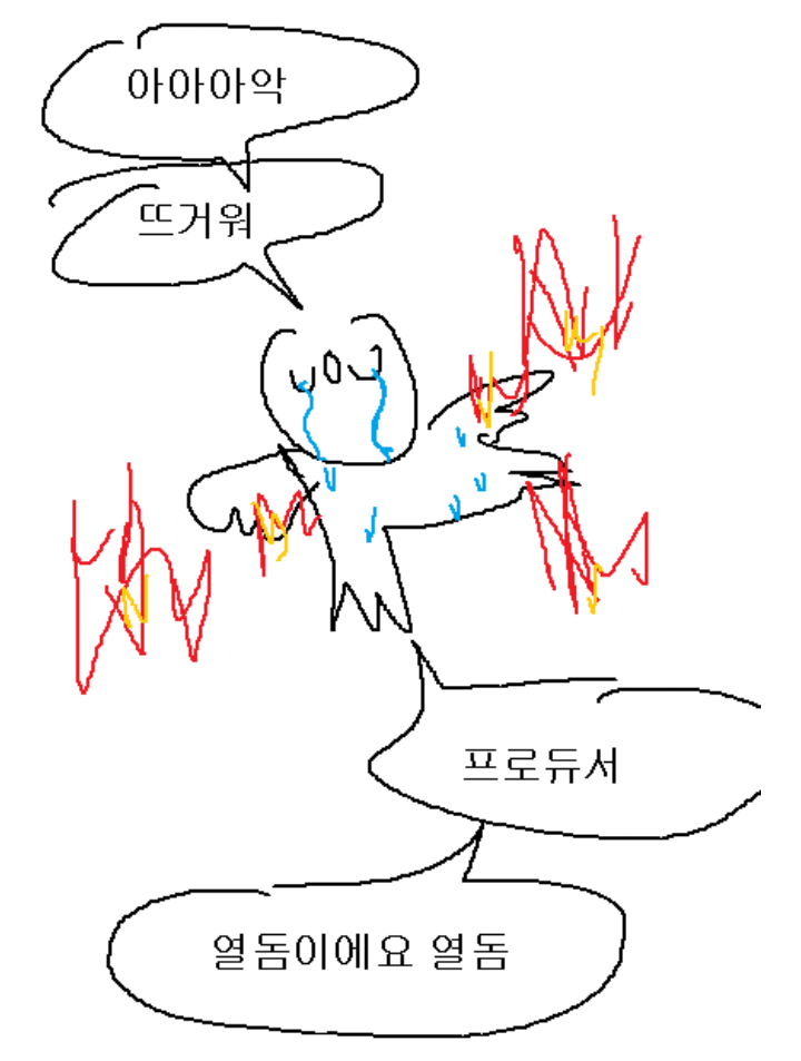 씹쌔 : 나는 에어컨 쐬다 냉방병 걸릴거 같으니 좀 더 뜨거워도 되지않을까?