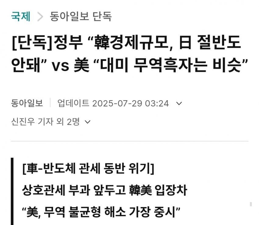 미국이 바보도 아니고, 드러누으면 당장 8/1 부터 한국만 25% 관세 먹는겁니다. 트럼프가 그냥 일률적으로 무역흑자금액으로 단순 때려놓고 시작한 이유가 일단 키를 자기들이 가져오고 시작하겠다는겁니다. | 25.07.29 16:34 | | |