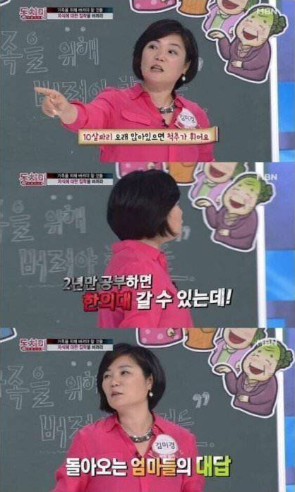 이거 그거 아님? 어머님 꿈을 자녀에게 강요하지 마세요... 의사가 되길 원하신다구요? 어머니가 지금부터 공부해서 의사되는게 더 빨라요. 라고 말하던... | 25.08.04 15:52 | | |
