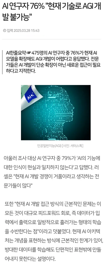 지금은 다행히도 'AGI는 어렵다' 추세인데 만약 이러다 'AGI 까지도 지금 방식으로 가능하다' 쪽으로 전환된다면 이제 수많은 사람들의 일자리가 날라가는 건가
