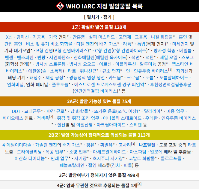 나프탈렌과 동급으로 차량의 배기가스 / 경유 / 휘발유 / 고사리(너는 뭐냐?) / 아스팔트 타르 / 드라이클리닝 등등 그냥 세계를 전부 다 파괴해야 하는거 아니냐? 이건 사고쳐놓고 그냥 수습 대충하다가 변명이 사달난거 같은데 | 25.08.05 20:57 | | |