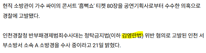 위에 기사 누가 캡쳐한게 있네 김영란법 위반이라고. | 25.08.21 19:12 | | |