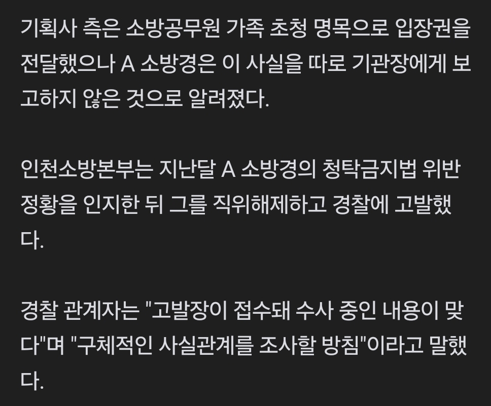소방직원들 가족들꺼 까지 나온 티켓임 그걸 윗급에서 처먹은거고 인당 4장해봐야 20명분임 딱 관할 소방소 급 인원일거임 | 25.08.21 19:09 | | |