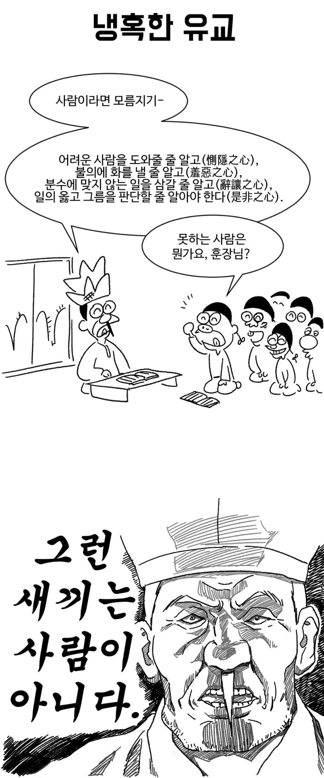 유교 관점에선 왕이 왕다워야 왕이지 왕이 왕답지 않으면 걍 배신해도(신하가 신하자리 때려치든, 물리적으로 왕을 조지든) 좋다고 하는게 유교임. 왕이 3번이나 하지말라고 충신이 진심으로 간언했는데도 말귀를 못 알아쳐먹고 계속 빙구짓거리 하면 걍 왕이고 나발이고 개무시해도 되는데, 아비가 3번 간언했는데도 계속 등.신짓 하면 울면서 따라야 한다고 한게 유교의 가르침이고. 유교의 관점으로는 왕보다도 철저하게 나라 전체와 백성을 더 우선시했음. | 25.08.30 17:28 | | |