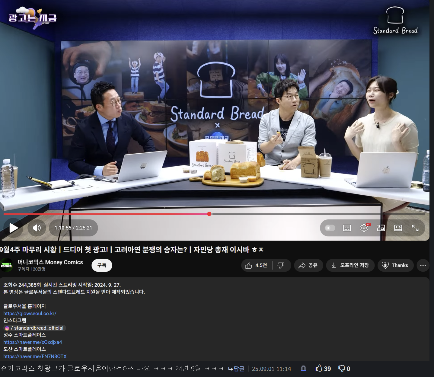 저기가 곧 상장하려고 준비한다던데 내 생각에 이전 슈카 이슈는 저 회사 홍보해주려고 앞광고 하다가 그게 이상하게 터져버린거로 보임. 득은 인지도 올린 글로우가 보고 욕은 슈카가 다 뒤집어 쓴거지 | 25.09.01 16:31 | | |