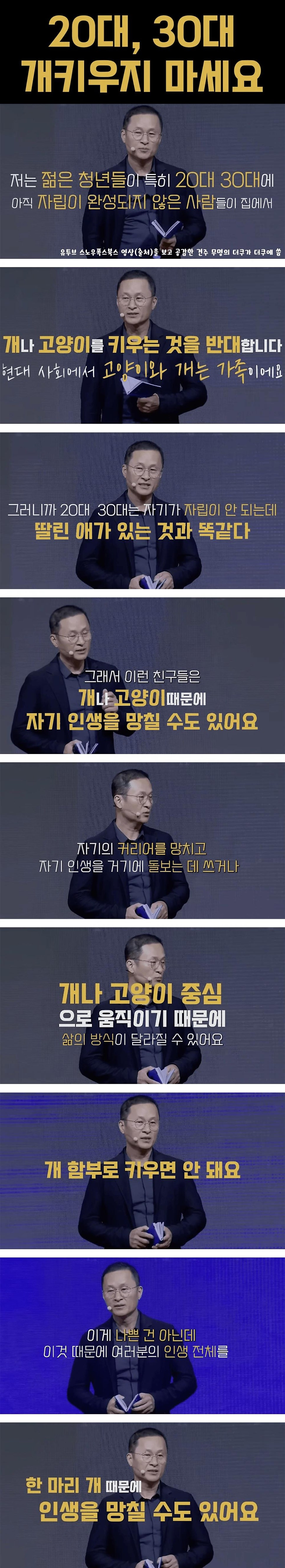 자녀는 사람이고 저건 개고양이고. 같지가 않지. 자녀를 중심으로 인생이 변하는 건 자연스러운 건데, 그걸로 인간이 자라잖아. 개고양이랑은 다르지. | 25.09.03 03:35 | | |